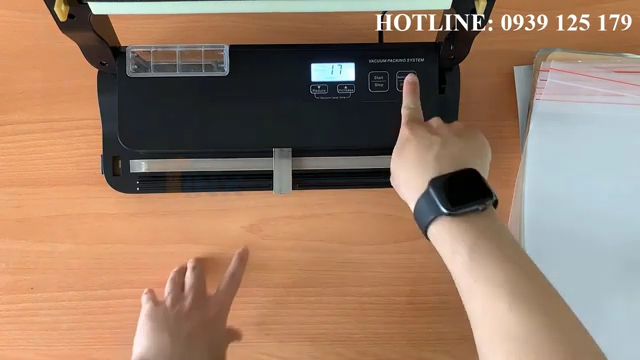 Cách sử dụng máy cũng khá đơn giản. Trước tiên, người dùng cắm điện và khởi động máy. Sau đó đặt miệng túi vào đúng vị trí trong khoang hút, lưu ý mép túi phải đặt thẳng và sát vào thanh hàn để tránh bị gấp mép hoặc hở khí sau khi đóng gói. Tiếp theo, đóng nắp máy và nhấn nút Start để bắt đầu quá trình hút chân không.