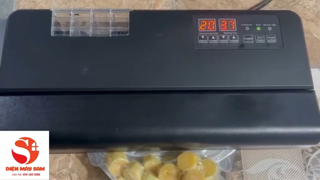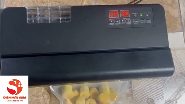 Sau khi đóng nắp, người dùng nhấn nút hút hai lần để máy bắt đầu hoạt động. Máy sẽ hút kiệt không khí bên trong túi, giúp sản phẩm được bảo quản tốt hơn. Khi hút xong, máy tự động thực hiện quá trình hàn miệng túi. Mối hàn thường rất dày, khít và chắc chắn, đảm bảo túi đóng kín hoàn toàn, không bị lọt không khí.