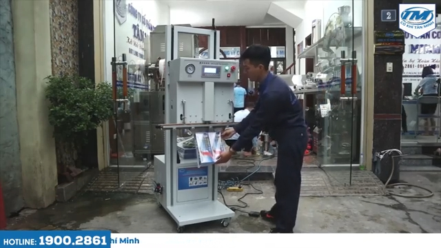 Trong chế độ chỉ hàn, người dùng đặt sản phẩm vào túi, kẹp sản phẩm trên mép đường hàn, nhấn bàn đạp để máy hàn theo thông số đã cài đặt.