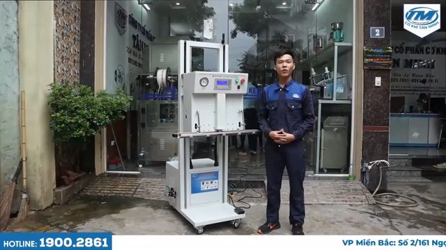 Phần đầu máy bao gồm đồng hồ hiển thị áp suất, màn hình hiển thị, đèn báo nguồn, công tắc khẩn cấp và công tắc nguồn chính. Trên đầu máy còn có vòi hút và đường hàn ngang để đảm bảo miệng túi được hàn kín, không khí không lọt ra ngoài.