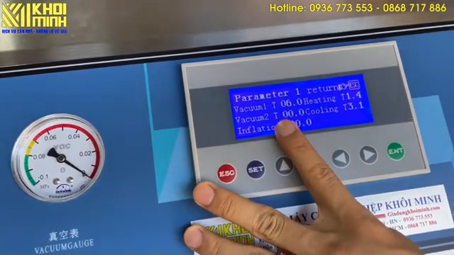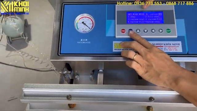 Người dùng cài đặt các thông số như thời gian hút, thời gian hàn, thời gian làm nguội trực tiếp trên bảng điều khiển PLC, dễ dàng điều chỉnh theo độ dày túi và loại sản phẩm. Máy có vòi hút linh hoạt, dễ thao tác, phù hợp với nhiều loại bao bì và sản phẩm.