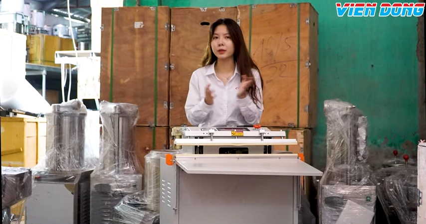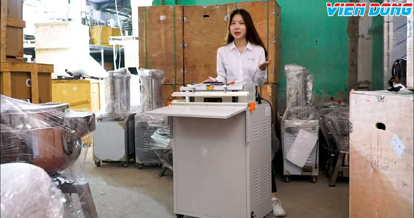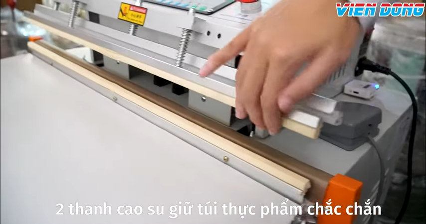 Máy có bàn đặt sản phẩm phía trước, có thể tháo rời, giúp linh hoạt trong thao tác đóng gói. Chiều dài thanh hàn lên đến 60cm, phù hợp với các sản phẩm lớn như pizza hay các thực phẩm có diện tích rộng, giúp túi được hút hoàn toàn chân không và nén gọn.