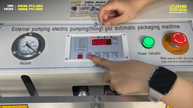 Máy còn được trang bị bảng điều khiển dễ sử dụng, cho phép điều chỉnh các chức năng như hút chân không, bơm thổi khí, hàn miệng túi, làm mát, và chuyển đổi giữa chế độ tự động và bán tự động. Các nút điều chỉnh đơn giản giúp bạn dễ dàng cài đặt thời gian hút và hàn theo nhu cầu sử dụng.