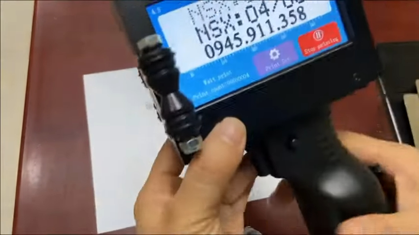 Trước khi in, các bạn cần lắp hộp mực vào máy. Mỗi hộp mực đều có một nắp nhựa bảo vệ để tránh mực bị khô trong quá trình bảo quản. Khi sử dụng các bạn tháo nắp nhựa này ra rồi lắp hộp mực vào vị trí đầu phun của máy sao cho khớp với đầu phun, sau đó ấn chốt giữ hộp mực để cố định. Khi máy đang ở màn hình soạn thảo các bạn có thể nhấn nút Print hoặc Start Print để bắt đầu in. Khi in các bạn giữ máy và lăn nhẹ máy theo một chiều từ trái sang phải trên bề mặt sản phẩm để nội dung được in ra rõ ràng. Nếu không in nữa thì nhấn Stop Print để dừng. Sau khi sử dụng xong nếu khoảng 50 phút không in thì nên tháo hộp mực ra và đậy lại nắp nhựa để tránh mực bị khô.