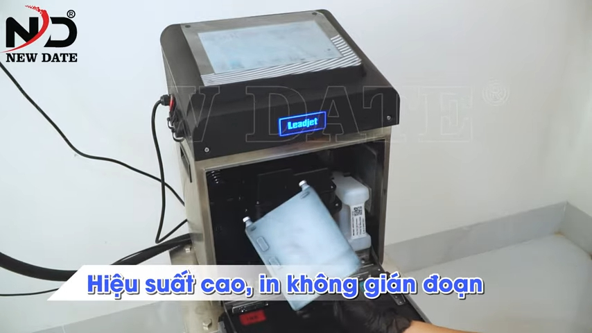 Một điểm nổi bật của máy LEADJET V8820 là khả năng tiết kiệm mực, với hệ thống kiểm soát dung môi tiên tiến giúp giảm thiểu tiêu hao mực chỉ ở mức 2,4ml/giờ. Điều này không chỉ giúp giảm chi phí vận hành mà còn tăng hiệu quả làm việc lâu dài. Mỗi hợp mực có thể in lên tới 60 triệu ký tự, tiết kiệm và giảm thiểu chi phí bảo trì.