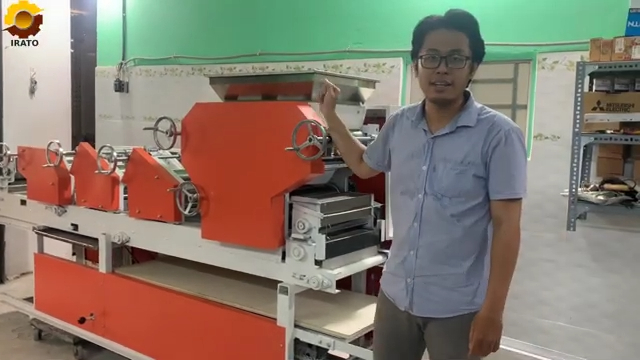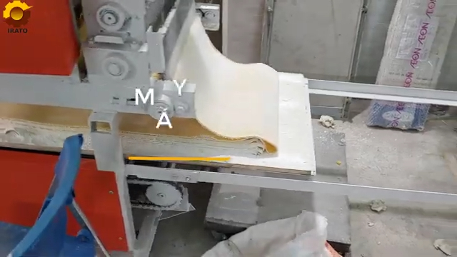 Máy còn được trang bị hệ thống lô cán đặc biệt với kích thước lớn, đường kính lô cán có thể lên đến khoảng 4 tấc. Các lô cán được xử lý bề mặt bằng công nghệ đặc biệt giúp tăng độ bền, đồng thời tạo ra bề mặt lá mì đẹp và mịn hơn khi chạy ra thành sợi. Toàn bộ hệ thống máy gồm khoảng 12 trục cán và 12 bộ điều chỉnh giúp quá trình cán bột diễn ra ổn định, cho ra sản phẩm có chất lượng cao. Ngoài ra, máy còn được trang bị hệ thống rải bột tự động giúp bột được phủ đều trên bề mặt lá mì. Hệ thống này gồm nhiều bộ phận khác nhau để rải bột, giữ lại lượng bột thừa và đảm bảo lớp bột phủ đều giúp lá mì không bị dính trong quá trình cán và cắt. Bên cạnh đó, máy còn có hệ thống băng tải hai tầng giúp bột được phủ đều trên cả hai mặt của lá mì, từ đó tạo ra những sợi mì đẹp và chất lượng hơn.