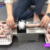 Máy có cấu trúc chắc chắn với các bộ phận cơ khí được gia công tỉ mỉ, đảm bảo độ bền và an toàn trong vận hành. Kích thước tổng thể khoảng 1,6m dài, 60cm rộng và 90cm cao, trọng lượng khoảng 60kg, vừa đủ gọn để bố trí trong xưởng sản xuất mà không chiếm nhiều diện tích.
