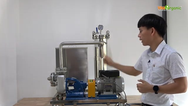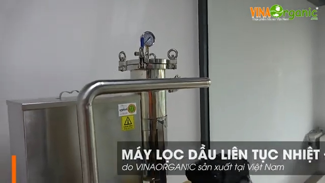 Tiếp đến là bồn lọc tinh, được trang bị lõi lọc inox với lưới khoảng 100 micron. Lõi lọc này chịu nhiệt cao, giữ lại các cặn nhỏ còn sót lại trong dầu, giúp dầu sau lọc trở nên sạch và tinh khiết. Việc sử dụng lõi lọc inox thay vì lõi giấy giúp máy hoạt động ổn định ở nhiệt độ cao, đảm bảo hiệu quả lọc lâu dài.