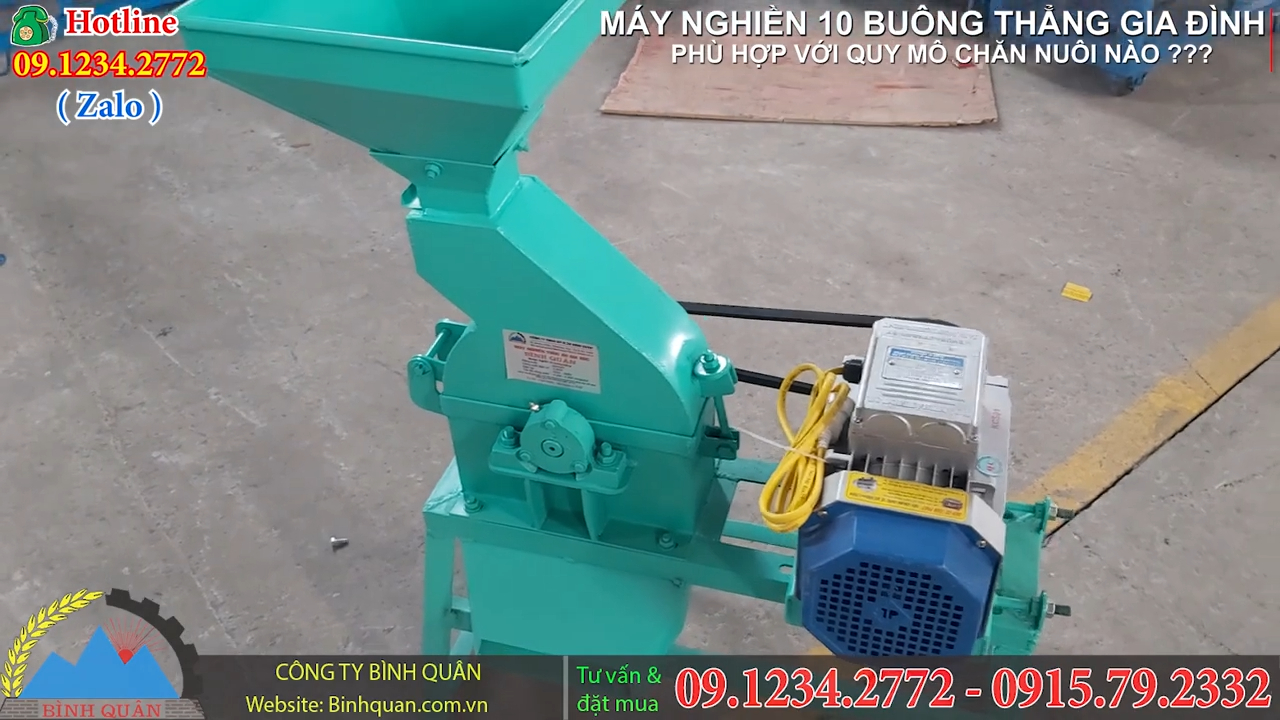 Quý vị đang tìm kiếm một thiết bị có khả năng nghiền nhanh, mạnh và có thể xử lý nhiều loại nguyên liệu thành hạt nhỏ hoặc bột mịn, với thiết kế gọn gàng, giá thành hợp lý để sử dụng trong các hộ gia đình? Vậy thì quý vị có thể tham khảo ngay sản phẩm đang có mặt bên cạnh tôi đây. Đây là máy nghiền bột mini dùng cho hộ gia đình, một thiết bị hỗ trợ chăn nuôi được Công ty Bình Quân thiết kế và sản xuất, hiện đang được nhiều bà con tin tưởng sử dụng.