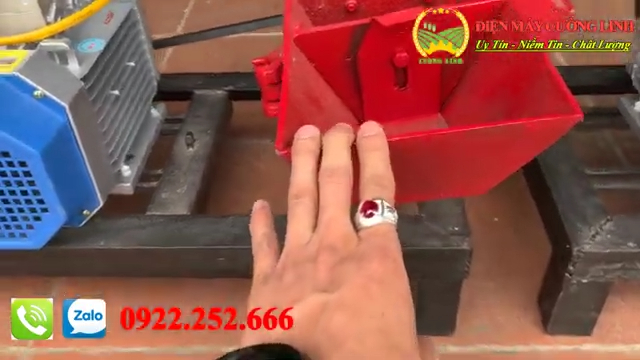 Về kích thước tổng thể, máy có chiều dài khoảng 70cm, chiều cao khoảng 50cm và chiều ngang khoảng 50cm, trọng lượng gần 50kg nên khá đầm và chắc chắn. Nhờ khung thép dày, đầu nghiền gang chắc và motor dây đồng nên máy có độ bền cao, phù hợp sử dụng lâu dài.