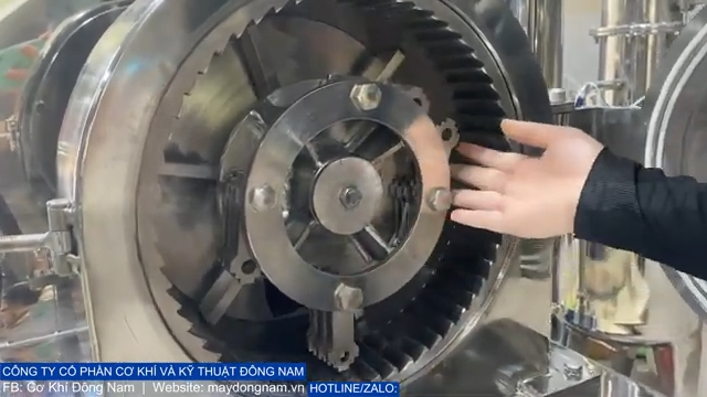 Bên trong buồng nghiền được trang bị các lưỡi nghiền sắc bén làm từ vật liệu inox chất lượng cao, giúp nghiền nhỏ nguyên liệu nhanh chóng và bền bỉ trong quá trình sử dụng. Sau khi được nghiền, bột sẽ đi qua hệ thống sàng và được hút vào đường ống dẫn để chuyển tới bộ phận thu hồi bột.
