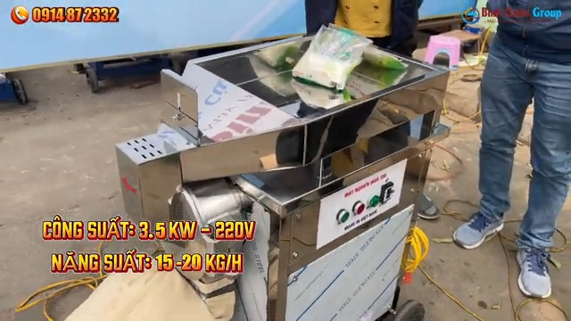 Máy được chế tạo từ inox 304, có khả năng chống gỉ, dễ lau chùi và đảm bảo vệ sinh. Thiết kế hiện đại với phễu nạp nguyên liệu lớn và sâu giúp nguyên liệu dễ dàng chảy xuống buồng nghiền. Tấm chắn điều chỉnh lượng nguyên liệu giúp kiểm soát tốc độ nạp, hạn chế tình trạng kẹt máy hoặc quá tải, nâng cao hiệu quả vận hành.