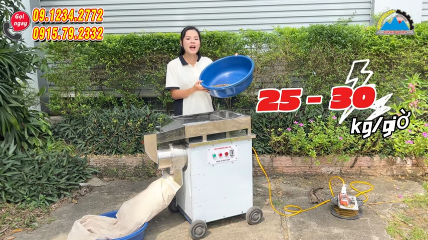 Máy sử dụng động cơ công suất khoảng 3,5kW với lõi dây đồng 100%, mang lại lực nghiền mạnh và khả năng vận hành ổn định. Với cấu hình này, máy có thể đạt năng suất nghiền khoảng từ 25 đến 30kg nguyên liệu mỗi giờ, đáp ứng tốt nhu cầu của các cơ sở chế biến bột ngũ cốc, gia vị hoặc dược liệu.