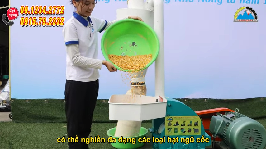 Máy được trang bị động cơ công suất 11kW với tốc độ quay khoảng 2.900 vòng/phút, đảm bảo quá trình nghiền nhanh và hiệu quả. Năng suất trung bình khi nghiền mịn đạt 120–180kg nguyên liệu mỗi giờ, còn khi nghiền siêu mịn đạt khoảng 100kg mỗi giờ, đáp ứng tốt nhu cầu sản xuất của nhiều cơ sở chế biến.