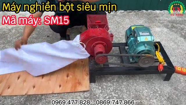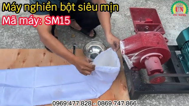 Trong quá trình vận hành, máy chạy khá êm, bột được thu vào túi vải và phồng dần lên, giúp thu gom sạch sẽ. Năng suất trung bình đạt 30–35kg mỗi giờ, bột mịn gần như không còn cặn, rất thích hợp để làm bột bánh, bột gạo, bột thính hoặc bột ngũ cốc dinh dưỡng cho gia đình. Mẫu máy này chuyên nghiền bột siêu mịn nên năng suất không quá cao như máy nghiền thức ăn chăn nuôi, nhưng hoàn toàn đáp ứng nhu cầu sinh hoạt và chế biến thực phẩm tại nhà.