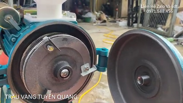 Máy sử dụng hai mặt đá nghiền, bên ngoài có vỏ bảo vệ chắc chắn, phía trên có máng nhựa để đổ nguyên liệu. Nguyên liệu đi xuống buồng nghiền và được nghiền ra ở cửa xả bên dưới. Máy chạy bằng điện 220V với tốc độ quay khoảng 1.400 vòng/phút, phù hợp cho gia đình hoặc cơ sở sản xuất nhỏ cần nghiền bột khô.