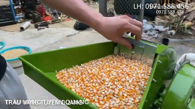 Việc thay sàng rất đơn giản: mở nắp, lắp sàng vào khít vị trí, đóng lại và cắm điện để vận hành. Năng suất khoảng 60–80kg nguyên liệu mỗi giờ, phù hợp nghiền cám, ngô, hoặc nguyên liệu làm thức ăn chăn nuôi.