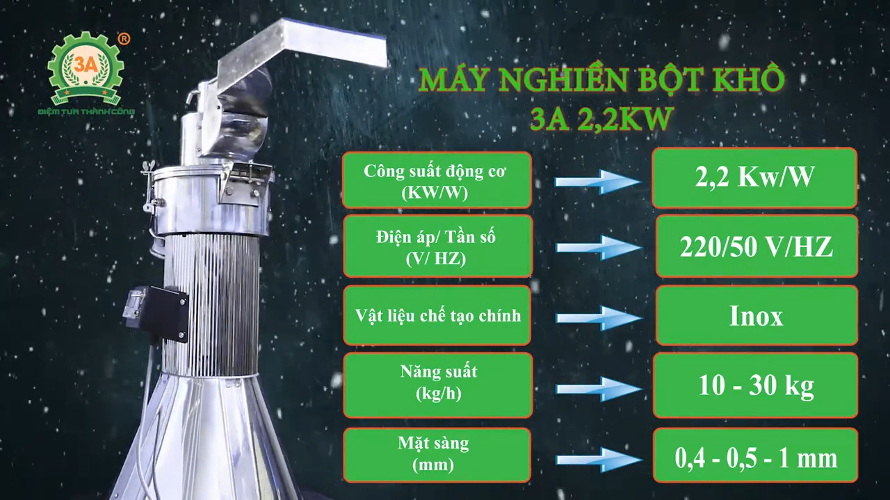 Máy nghiền thuốc bắc siêu mịn 3A 2,2kW là giải pháp phù hợp cho những cơ sở cần nghiền dược liệu hoặc nguyên liệu khô thành bột mịn với năng suất ổn định.