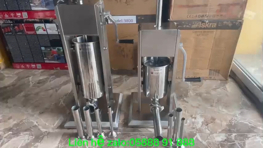 Hai mẫu máy trong video gồm một máy dung tích 3 lít và một máy dung tích 5 lít. Cả hai dòng máy đều được trang bị sẵn 4 đầu đùn với kích thước khác nhau để người dùng có thể lựa chọn tùy theo nhu cầu sử dụng. Với bộ đầu đùn này, người dùng có thể làm nhiều loại sản phẩm khác nhau như xúc xích nhỏ, xúc xích lớn, lạp xưởng hoặc lòng dồi tùy theo mục đích sử dụng.