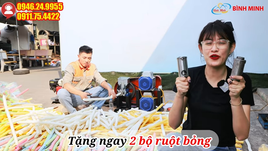 Ngoài ra khi mua máy, khách hàng còn được tặng kèm 2 bộ ruột bỏng theo nhu cầu sử dụng, giúp dễ dàng thay đổi loại bỏng sản xuất. Sản phẩm còn được hỗ trợ vận chuyển toàn quốc và nhận hàng kiểm tra trước khi thanh toán, giúp khách hàng yên tâm khi đặt mua.