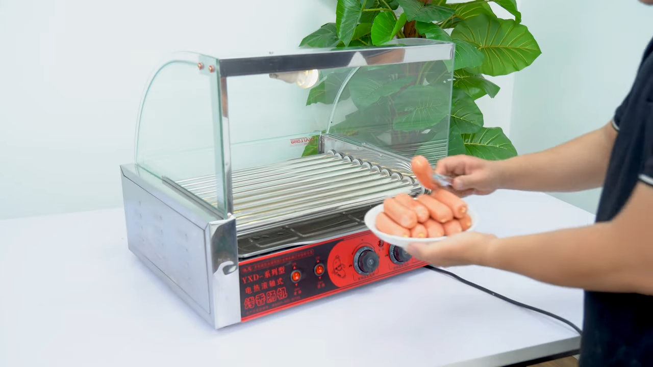 Với cơ chế quay tự động, xúc xích sẽ được nướng chín vàng đều và giữ được độ nóng trong suốt quá trình bán hàng. Chỉ cần đặt xúc xích lên các thanh lăn của máy, sau một thời gian ngắn, xúc xích sẽ sẵn sàng để phục vụ khách hàng, giúp nâng cao hiệu quả công việc.