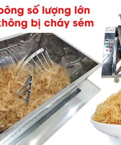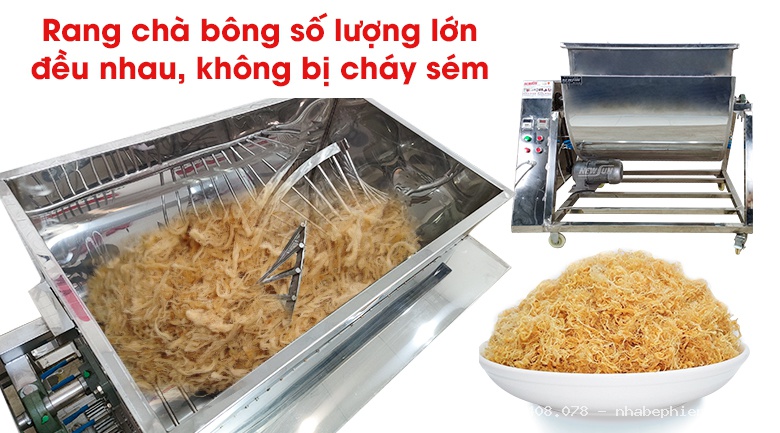 Thực tế sử dụng cho thấy, khoảng 15kg thịt tươi sau khi dim và đưa vào rang trong vòng 30 phút sẽ thu được xấp xỉ 6kg ruốc thành phẩm. Ruốc ra bông, nhẹ, thơm và tơi đều, rất dễ đóng gói hoặc bán lẻ. Con số này giúp bà con dễ dàng tính toán định mức nguyên liệu, chi phí và lợi nhuận khi làm ruốc kinh doanh.