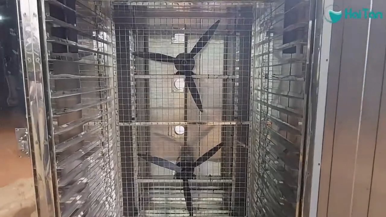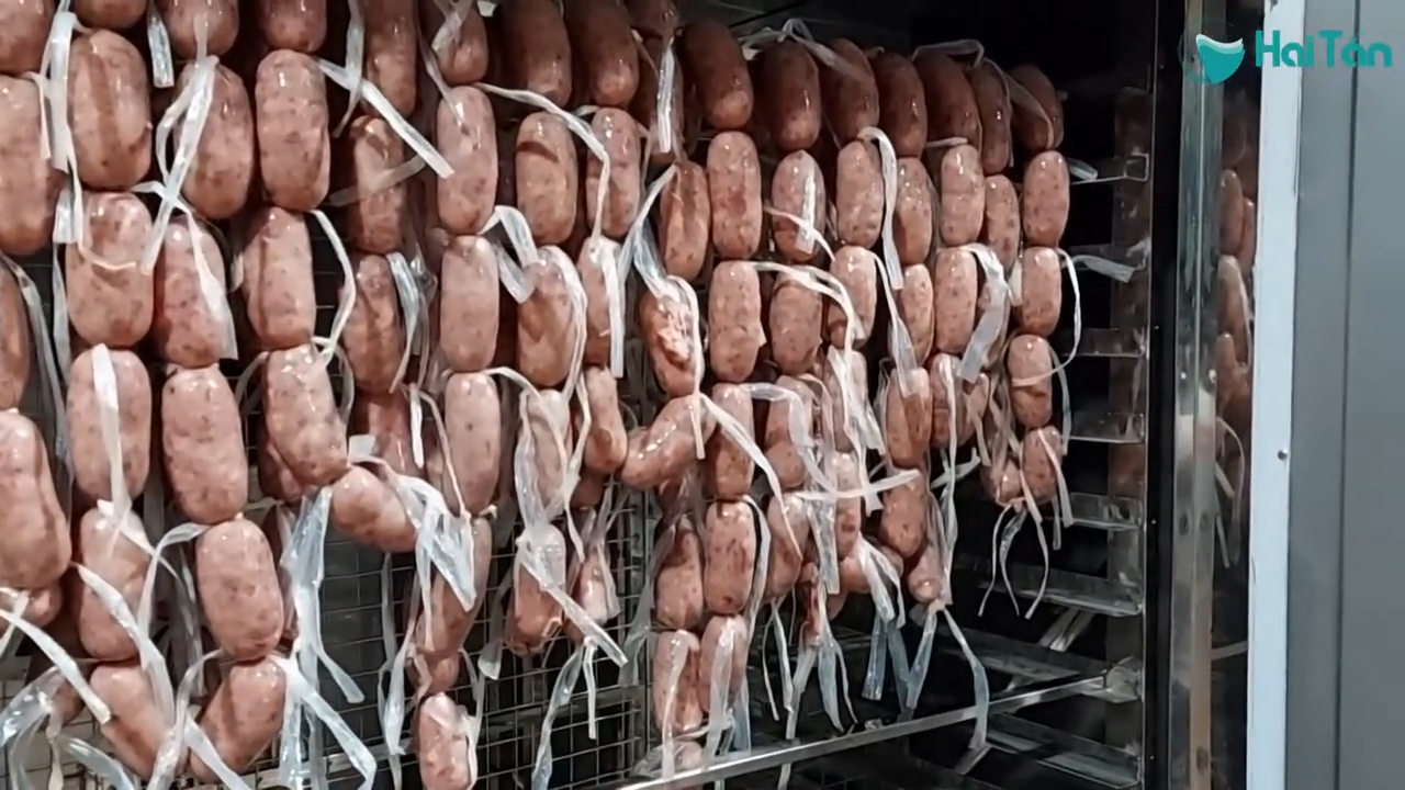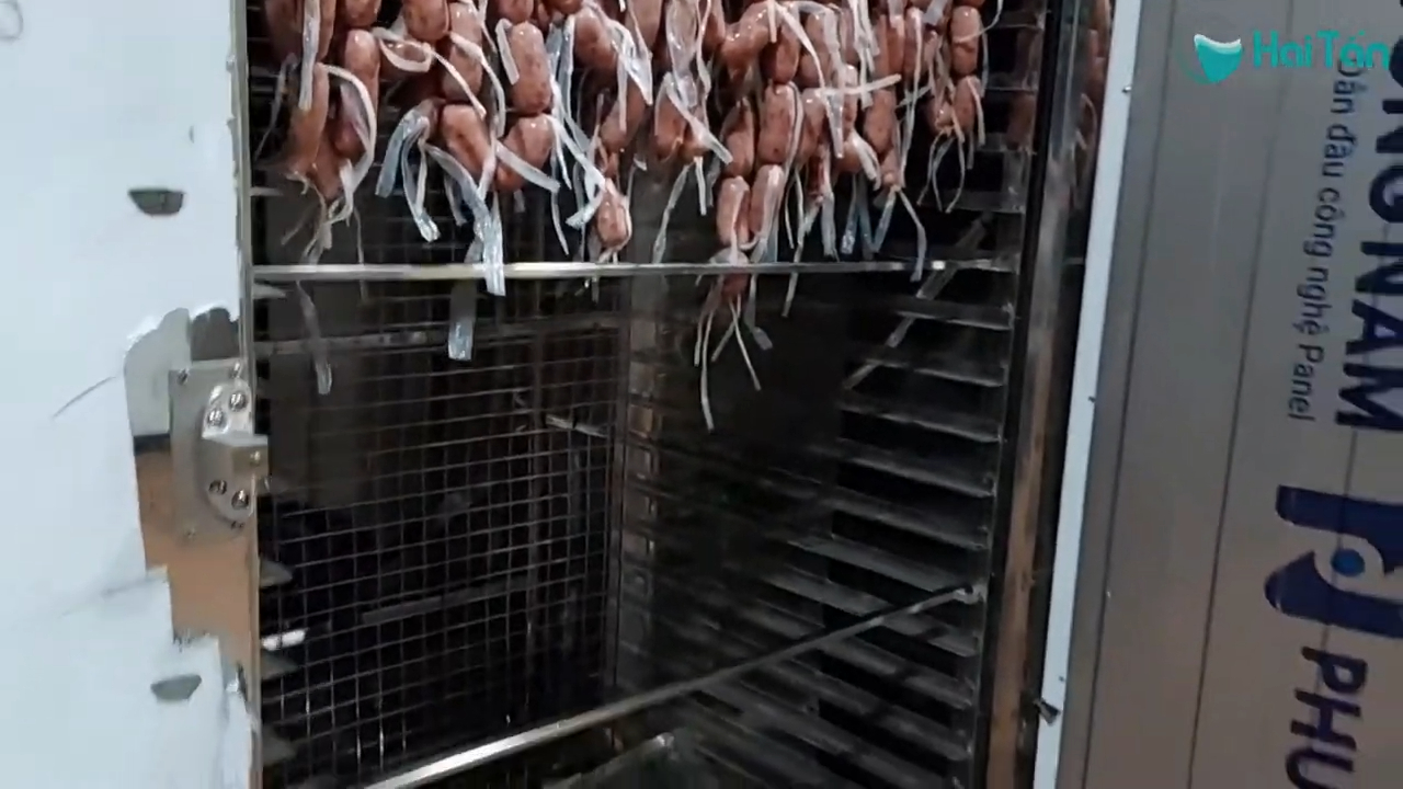 Khi máy hoạt động, luồng khí nóng sẽ được tạo ra và lưu thông liên tục bên trong buồng sấy. Quá trình này giúp hơi nước trong lạp xưởng bay hơi dần, từ đó giúp sản phẩm đạt được độ khô cần thiết. Nhờ khả năng kiểm soát nhiệt độ và thời gian sấy, lạp xưởng sau khi sấy có màu sắc đẹp, độ khô đồng đều và giữ được hương vị đặc trưng của sản phẩm.