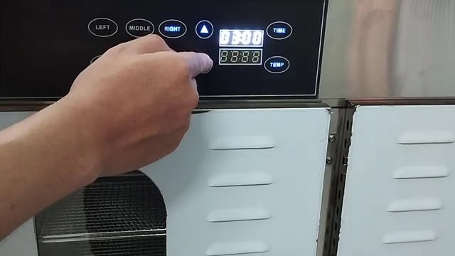 Ví dụ khi muốn cài đặt nhiệt độ và thời gian sấy cho buồng bên trái, người dùng có thể chọn buồng sấy tương ứng rồi nhấn nút cài đặt thời gian và nhiệt độ theo nhu cầu sấy của nguyên liệu.
