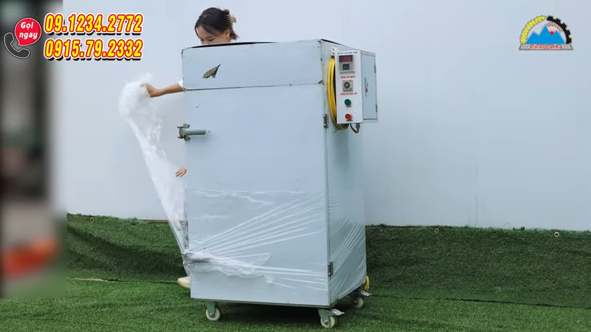 Trong nội dung này sẽ hướng dẫn cách vận hành máy sấy thực phẩm inox dùng cho gia đình, đây là tình trạng thực tế của máy khi khách hàng nhận được. Máy thường được bọc một lớp nilon bên ngoài để bảo vệ lớp inox, vì vậy khi nhận máy về bạn chỉ cần bóc lớp nilon này ra là có thể bắt đầu sử dụng. Việc bảo vệ bằng nilon giúp hạn chế trầy xước và giữ bề mặt inox luôn sáng đẹp trong quá trình vận chuyển.