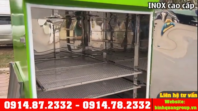 Với thiết kế hiện đại, toàn bộ bên ngoài máy được bao bọc bởi lớp sơn tĩnh điện chắc chắn, còn phần bên trong buồng sấy được chế tạo hoàn toàn bằng inox cao cấp sáng bóng giúp đảm bảo độ bền và vệ sinh an toàn thực phẩm trong quá trình sử dụng.