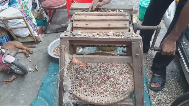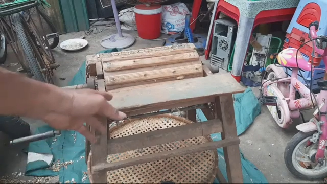 Chiếc máy tuốt đậu phộng này có cấu tạo khá đơn giản. Phần thân máy chủ yếu được làm bằng gỗ chắc chắn, phía dưới có hệ thống lưới sàng để tách hạt đậu sau khi tuốt. Bên trong thường có từ hai đến ba lớp lưới với kích thước khác nhau để giúp hạt rơi xuống dễ dàng trong khi vỏ và tạp chất được giữ lại phía trên. Khoảng cách giữa các lớp lưới được thiết kế hợp lý để đảm bảo hạt đậu phộng sau khi tuốt có thể lọt qua nhưng vẫn giữ được độ nguyên vẹn của hạt. Phần khung gỗ được cố định chắc chắn để đảm bảo máy hoạt động ổn định trong quá trình sử dụng.