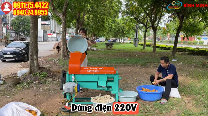 Máy tách hạt ngô thế hệ mới sử dụng nguồn điện dân dụng 220V nên rất thuận tiện cho hộ gia đình, trang trại hoặc cơ sở chế biến nông sản mà không cần điện ba pha. Thiết bị được trang bị động cơ mạnh mẽ khoảng 3,5 kW giúp quá trình tách hạt diễn ra ổn định và liên tục, bà con có thể sử dụng máy trong nhiều giờ liền để sơ chế nông sản sau thu hoạch mà vẫn đảm bảo hiệu quả cao.