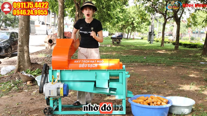 Nếu bà con đang tìm kiếm một thiết bị tách hạt ngô sạch, nhanh và tiết kiệm công sức thì máy tách hạt ngô siêu sạch thế hệ mới chính là lựa chọn đáng cân nhắc, dòng máy tách hạt ngô công suất lớn có khả năng tách hạt sạch lên đến hơn 98% giúp tách hạt ngô ra khỏi lõi nhanh chóng, hạn chế tối đa tình trạng vỡ hạt. Hạt ngô sau khi tách được đưa ra một cửa riêng, lõi bắp được đẩy ra cửa khác, phần vụn mày ngô và bụi sẽ được quạt gió thổi bay ra ngoài giúp thành phẩm sạch và dễ thu gom, năng suất đạt từ khoảng 800 kg đến 1 tấn ngô bắp mỗi giờ làm việc giúp xử lý lượng lớn nguyên liệu trong thời gian ngắn.
