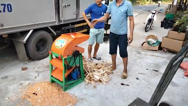 Sau khi lắp motor hoàn chỉnh, máy có thể vận hành thử để kiểm tra hiệu quả tách hạt. Khi bắp ngô được đưa vào buồng tách, hệ thống quả lô sẽ quay và tách hạt ra khỏi lõi, đồng thời quạt gió thổi tạp chất nhẹ ra ngoài giúp hạt ngô sạch hơn. Đây là dòng máy có thể xử lý cả bắp ngô còn vỏ mà không cần bóc vỏ trước, phù hợp cho hộ gia đình, trang trại chăn nuôi hoặc cơ sở sản xuất nhỏ muốn tiết kiệm thời gian và chi phí đầu tư.