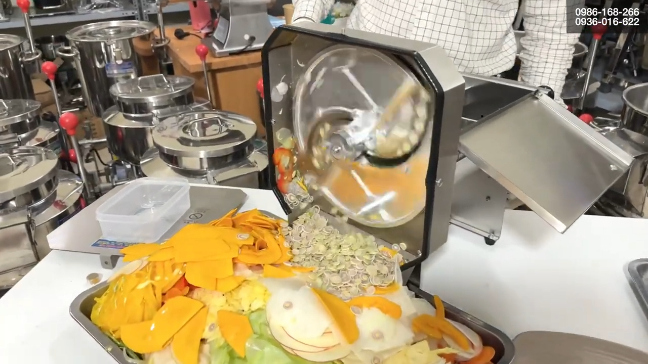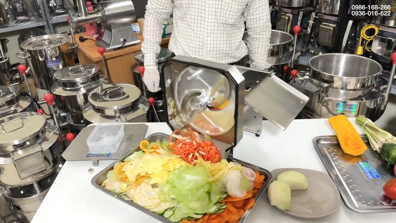 Máy Thực Phẩm Việt xin kính chào quý khách. Hôm nay chúng tôi giới thiệu đến quý khách máy thái lát củ quả cao cấp IC380, một thiết bị đang được rất nhiều nhà hàng, quán ăn, bếp ăn công nghiệp và gia đình lựa chọn nhờ khả năng thái nhanh, đều và tiết kiệm nhân công. Máy có thể thái đa dạng các loại củ quả như: cà rốt, khoai tây, su hào, cải bắp, hành tây, tỏi, ớt, sả, dưa leo, cà chua, táo, cam… gần như tất cả các loại rau củ thông dụng trong chế biến thực phẩm. Chỉ cần cho nguyên liệu vào khoang chứa và bật công tắc, máy sẽ tự động thái lát nhanh, đều và đẹp, giúp tiết kiệm rất nhiều thời gian so với thái bằng tay.