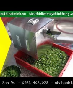 Quy trình vận hành máy vô cùng đơn giản. Bà con chỉ cần cắm nguồn điện dân dụng 220V, đóng nắp bảo vệ an toàn và xếp hành lá lên băng tải. Hệ thống băng tải tự động sẽ cuốn nguyên liệu vào khu vực dao cắt, giúp máy hoạt động hoàn toàn tự động mà không cần dùng lực tay, vừa nhanh vừa an toàn.
