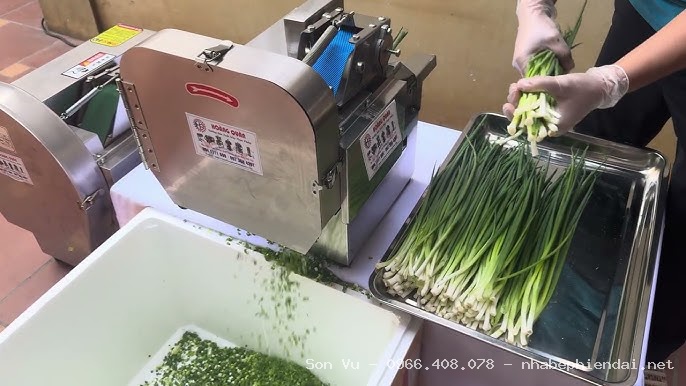 Một ưu điểm nổi bật của máy là khả năng điều chỉnh linh hoạt tốc độ lưỡi dao và băng tải, từ đó kiểm soát được độ dày mỏng của hành lá theo đúng yêu cầu món ăn. Khi băng tải chạy nhanh, lát hành sẽ to và dày hơn; ngược lại, khi băng tải chạy chậm, hành lá được cắt nhỏ, mịn, rất phù hợp cho các quán phở, bún bò, bún riêu cần hành thái đều và đẹp mắt.
