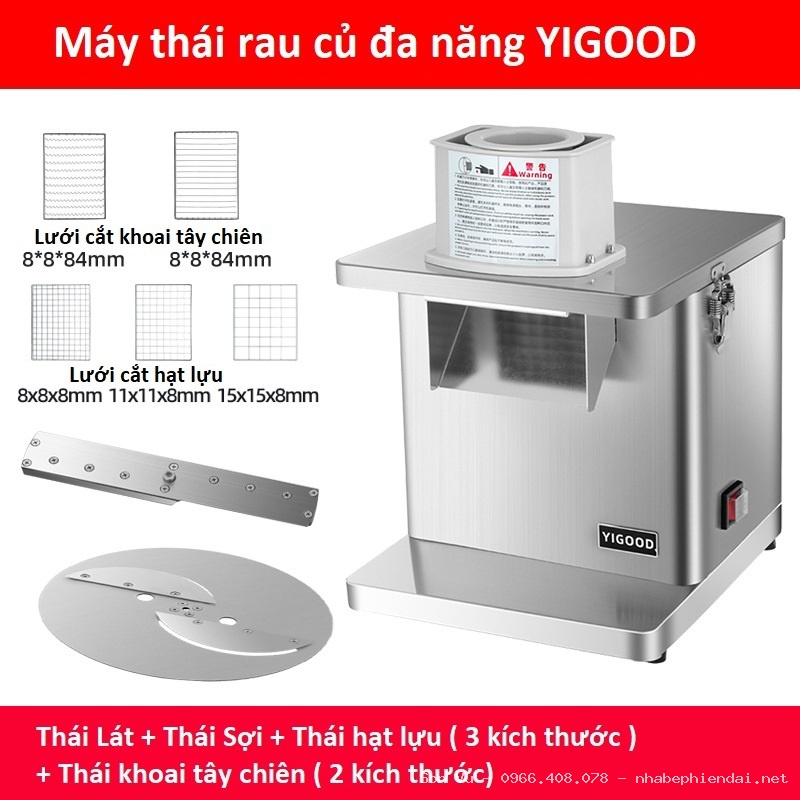 Máy thái hạt lựu khoai tây được trang bị bộ 4 lưỡi dao với các kích thước đa dạng gồm 6mm, 8mm, 10mm và 12mm, đáp ứng đầy đủ nhu cầu chế biến từ các món ăn cần hạt nhỏ tinh tế đến những món cần hạt to, rõ khối. Nhờ khả năng thay đổi lưỡi linh hoạt, bà con có thể sử dụng máy cho nhiều loại nguyên liệu và nhiều phong cách chế biến khác nhau.