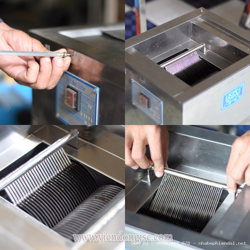 Máy sử dụng bộ lưỡi dao 5 li chuyên dụng, cho khả năng cắt chính xác và đồng đều. Với kích thước dao này, lạp xưởng sau khi cắt sẽ đạt độ vuông vức, hạt đều nhau, rất phù hợp làm nhân bánh Trung thu, xôi lạp xưởng, bánh bao hay các món chế biến sẵn yêu cầu tính thẩm mỹ cao.