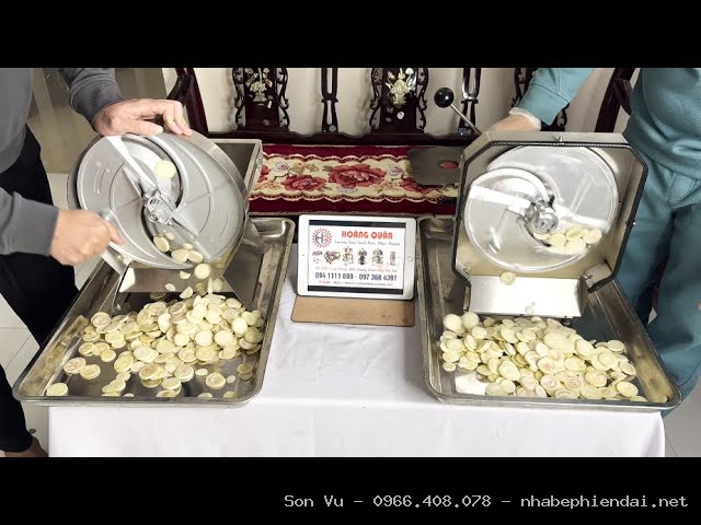 Nhờ lưỡi dao sắc bén kết hợp bàn ép định hình chuẩn, máy có thể thái cà chua cực ngọt mà không bị nát. Ngay cả với những loại quả mềm và nhiều nước, bà con chỉ cần chỉnh độ dày phù hợp là đã có ngay những lát cà chua mỏng đều, đẹp mắt để làm salad, trang trí món ăn hoặc sơ chế cho bếp ăn công nghiệp.