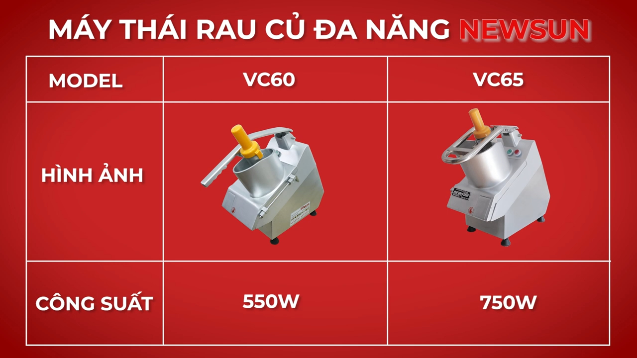 Hiện nay NRS đang cung cấp hai dòng máy cắt rau củ đa năng thuộc dòng VC, bao gồm VC60 và VC65. Hai model này có công dụng và chất liệu tương tự nhau, tuy nhiên sẽ khác nhau về kích thước, công suất, năng suất hoạt động cũng như một số chi tiết thiết kế. Ngoài ra, NRS còn cung cấp nhiều dòng máy thái rau củ khác nhau để đáp ứng nhu cầu từ quy mô gia đình đến quy mô công nghiệp. Khi đến với NRS, bạn có thể dễ dàng lựa chọn được sản phẩm phù hợp với nhu cầu của mình. Đúng như tên gọi, máy thái rau củ đa năng VC60 có rất nhiều chức năng khác nhau. Máy có thể thái được nhiều dạng như thái sợi với kích thước từ 2 đến 10 mm, thái lát với độ dày từ 2 đến 20 mm, thái dạng con chì với kích thước 3×3 mm, 4×4 mm hoặc 8×8 mm, và thái dạng hạt lựu với các kích thước như 8×8 mm, 10×10 mm hoặc 20×20 mm.