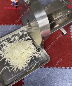 Quy trình vận hành máy thái sợi mực HQ-92 vô cùng đơn giản. Người dùng chỉ cần bật nguồn điện và thả mực dè hoặc mực khô vào hộc chứa, hệ thống dao sắc bén sẽ tự động cắt nguyên liệu thành sợi tơi đều, không bị dính chùm hay nát vụn. Nhờ cơ chế cắt dứt khoát và liên tục, máy giúp tiết kiệm đáng kể thời gian so với việc cắt tay thủ công.