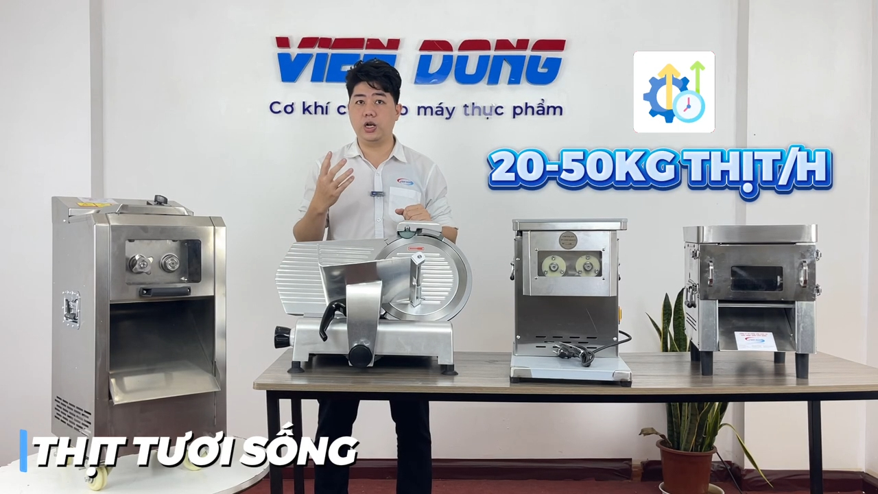 Khi lựa chọn máy thái thịt, nhiều người thường băn khoăn không biết máy thái thịt có thể cắt được những loại thịt nào và nên chọn dòng máy nào phù hợp với nhu cầu sử dụng. Thực tế hiện nay trên thị trường có rất nhiều dòng máy thái thịt khác nhau và mỗi loại máy sẽ phù hợp với từng loại nguyên liệu và mức năng suất riêng biệt. Hiểu rõ đặc điểm của từng dòng máy sẽ giúp người dùng lựa chọn được thiết bị phù hợp và sử dụng hiệu quả hơn trong quá trình chế biến thực phẩm.