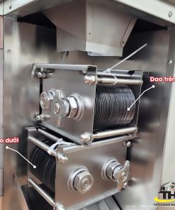 Điểm nổi bật nhất của máy thái thịt dạng sợi HQ-92 nằm ở cấu tạo hai bộ dao đặt vuông góc dọc – ngang. Khi thịt được đưa vào buồng cắt, bộ dao thứ nhất sẽ cắt theo chiều dọc, ngay sau đó bộ dao thứ hai tiếp tục cắt theo chiều ngang, biến miếng thịt nguyên khối thành những sợi dài đều tăm tắp chỉ trong một chu trình duy nhất. Nhờ nguyên lý này, thành phẩm không bị nát, không dính nhằng nhằng như nhiều dòng máy giá rẻ trên thị trường.