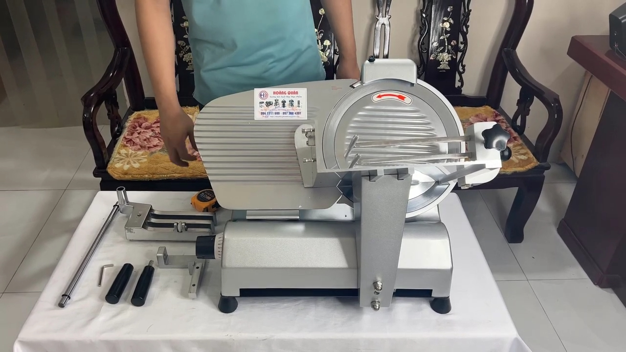 Sau khi cố định thịt, người dùng chỉ cần bật công tắc để máy hoạt động và điều chỉnh độ dày lát cắt theo nhu cầu. Máy có thể điều chỉnh từ lát cực mỏng đến lát dày hơn tùy theo món ăn cần chế biến.