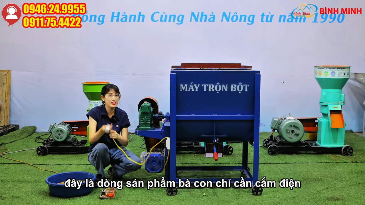Máy sử dụng động cơ một pha chạy điện 220V nên rất thuận tiện cho các hộ chăn nuôi gia đình hoặc các cơ sở sản xuất nhỏ, bà con chỉ cần sử dụng nguồn điện sinh hoạt thông thường là có thể vận hành máy dễ dàng mà không cần hệ thống điện công nghiệp phức tạp.