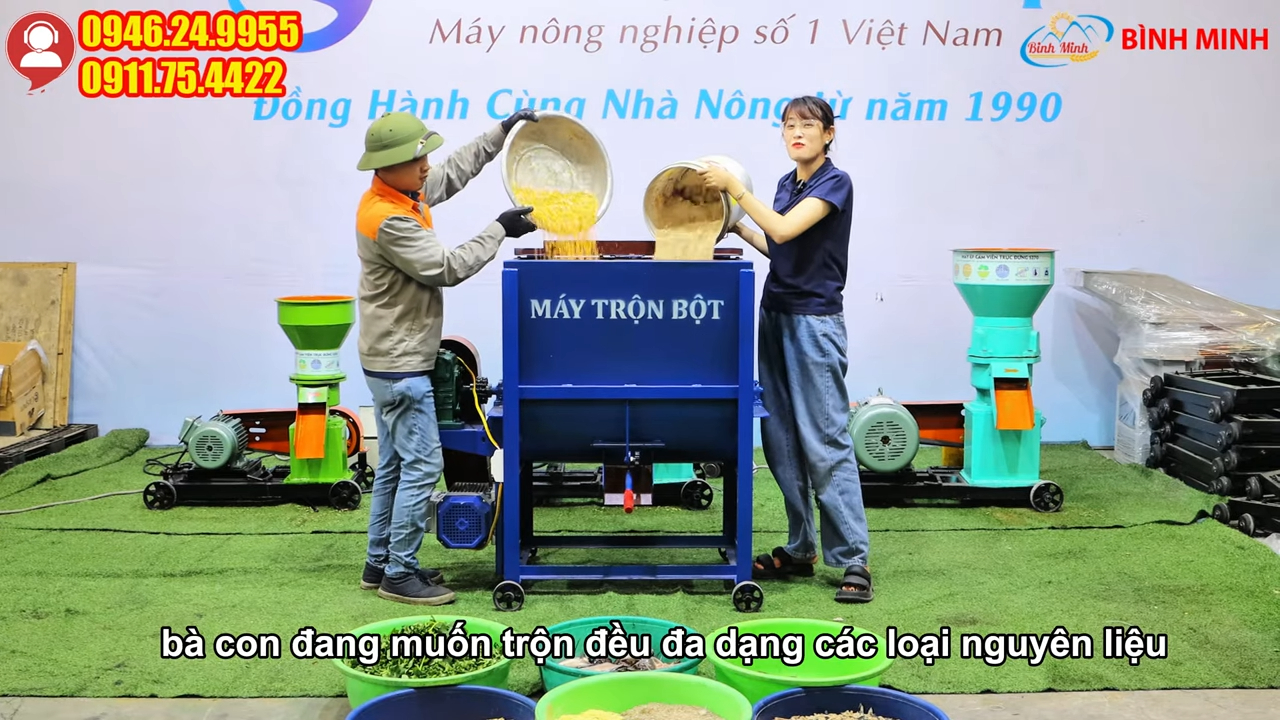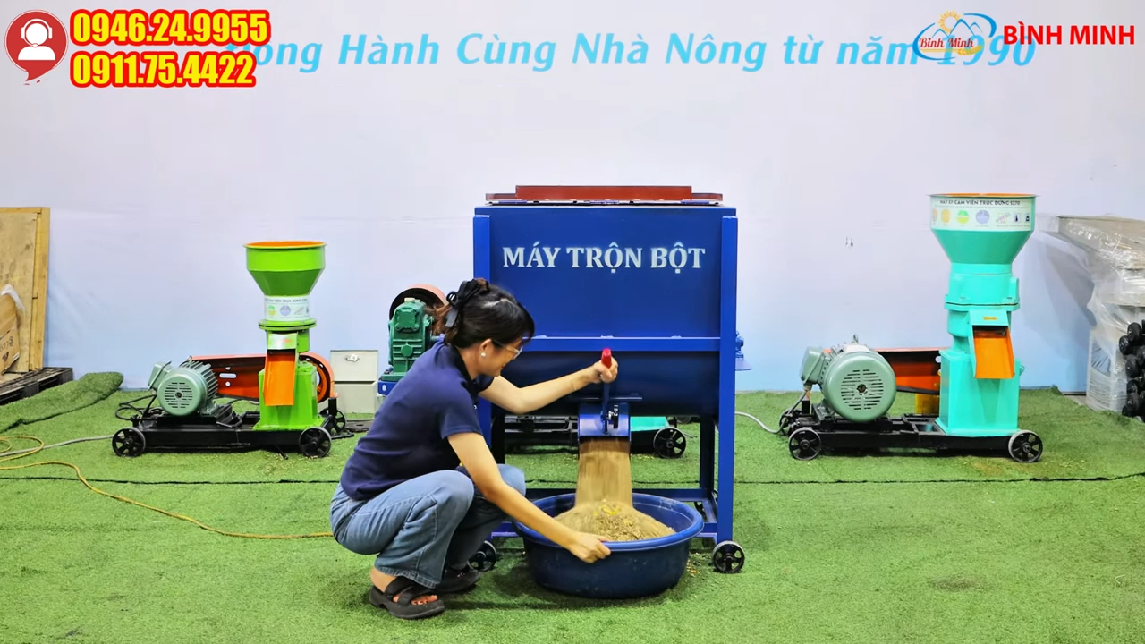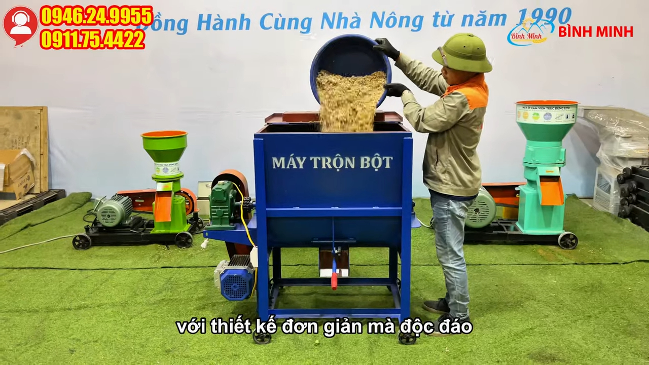 Với khả năng trộn khoảng 50kg nguyên liệu có độ ẩm không quá 30% trong mỗi mẻ và thời gian trộn chỉ từ 5 đến 10 phút, máy giúp bà con nhanh chóng có được hỗn hợp thức ăn chăn nuôi được trộn đều và đảm bảo chất lượng, cửa xả nguyên liệu được bố trí ngay dưới đáy thùng trộn giúp xả sạch nguyên liệu sau khi trộn xong, phía trên cửa xả còn có tấm chắn giúp điều chỉnh tốc độ xả nguyên liệu dễ dàng theo nhu cầu sử dụng.