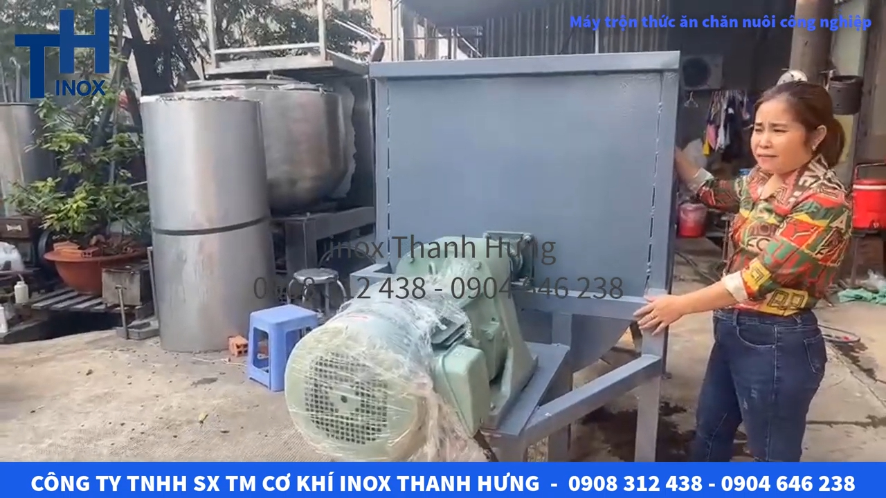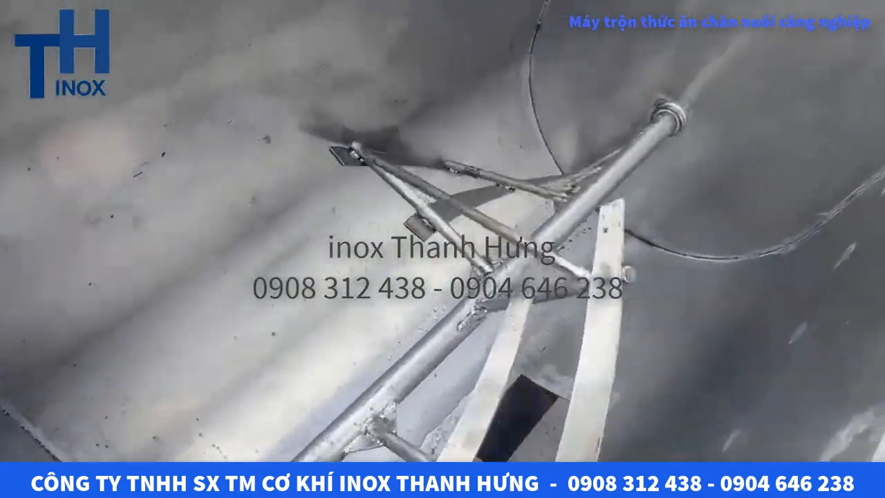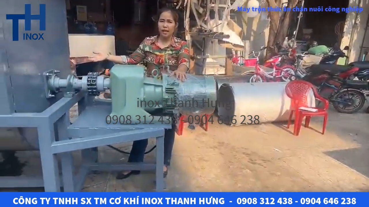 Thùng trộn của máy được thiết kế kích thước lớn và cấu tạo chắc chắn, phần thùng làm bằng inox dày khoảng 2 ly nhằm đảm bảo vệ sinh an toàn thực phẩm khi trộn các loại nguyên liệu thức ăn chăn nuôi. Thiết kế này giúp giảm chi phí đầu tư so với việc sử dụng toàn bộ vật liệu inox cho khung máy. Phần khung chân máy được gia công từ thép chắc chắn giúp nâng đỡ toàn bộ hệ thống thùng trộn, đảm bảo độ ổn định khi vận hành với khối lượng nguyên liệu lớn.