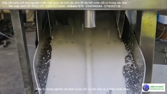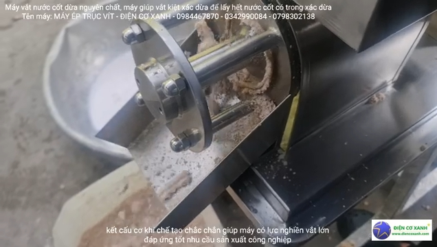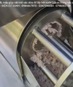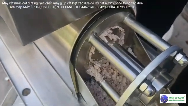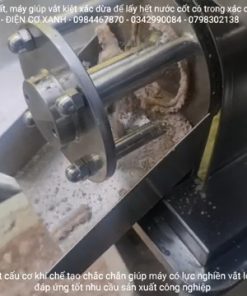 Điểm khiến khách hàng hài lòng là máy vận hành rất êm, động cơ hoạt động ổn định và được trang bị động cơ mới 100%, giúp máy ép khỏe và bền bỉ. Khi cho cơm dừa vào máy, hệ thống trục ép sẽ nhanh chóng ép kiệt nguyên liệu, bã dừa được tách ra riêng còn nước cốt dừa chảy ra liên tục. Nhờ lực ép mạnh, lượng nước cốt thu được khá nhiều và quá trình ép diễn ra nhanh chóng.