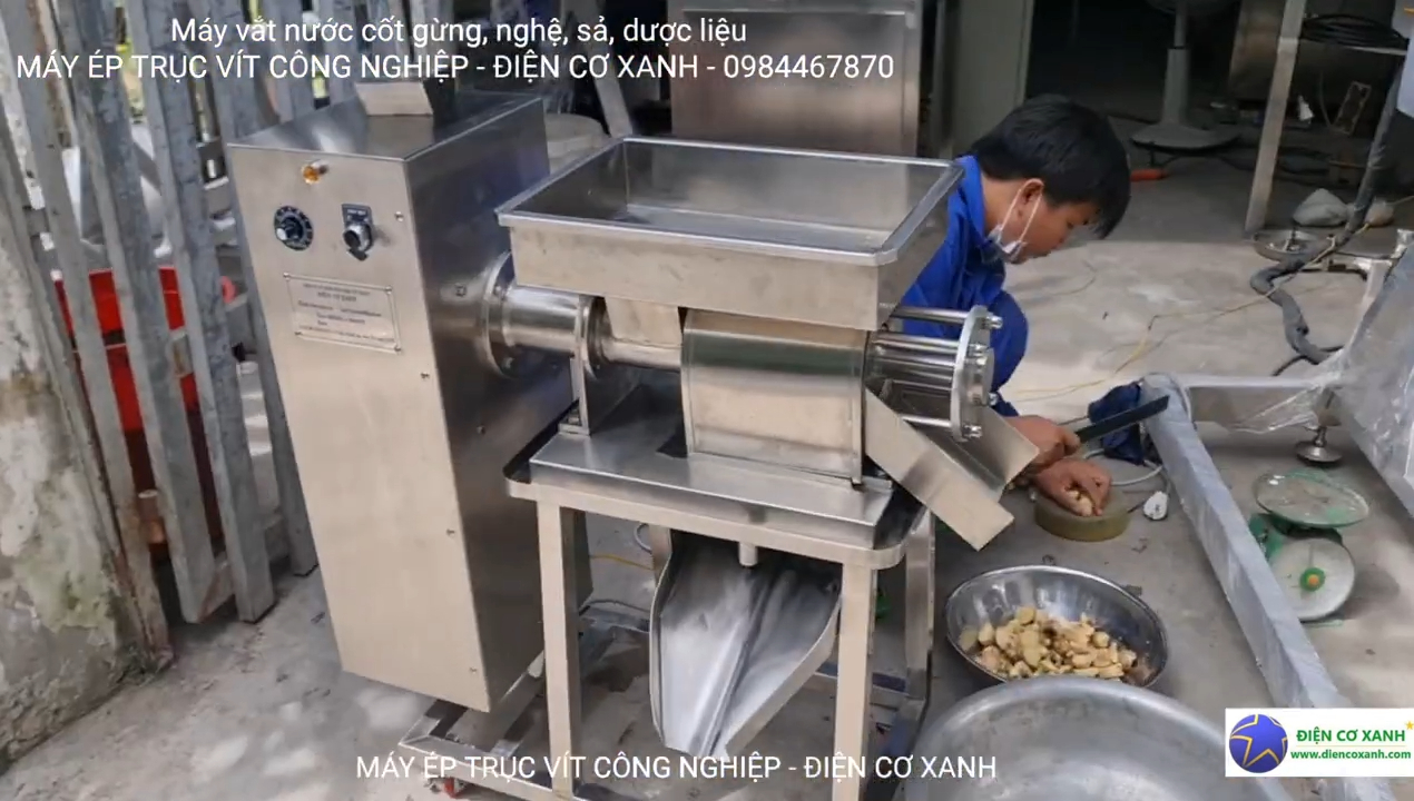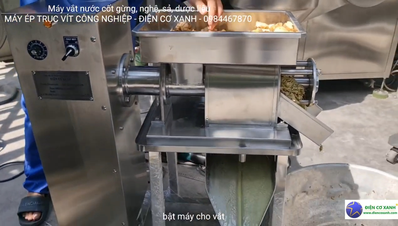 Đây là dòng máy vắt nước cốt dạng công nghiệp, được thiết kế chuyên dùng để vắt nước cốt gừng, nghệ, sả và nhiều loại nguyên liệu tự nhiên khác. Cách vận hành máy khá đơn giản, người dùng chỉ cần bật máy lên sau đó cho nguyên liệu vào liên tục, máy sẽ tự động tiến hành ép và tách nước cốt. Đối với củ gừng có kích thước lớn, trước khi đưa vào máy người dùng nên cắt nhỏ nguyên liệu để quá trình ép diễn ra thuận lợi hơn. Sau khi ép xong, phần bã gừng sẽ được máy đẩy ra ngoài, còn phần nước cốt nguyên chất sẽ được thu lại, giúp người dùng dễ dàng sử dụng trong chế biến thực phẩm hoặc các mục đích khác.